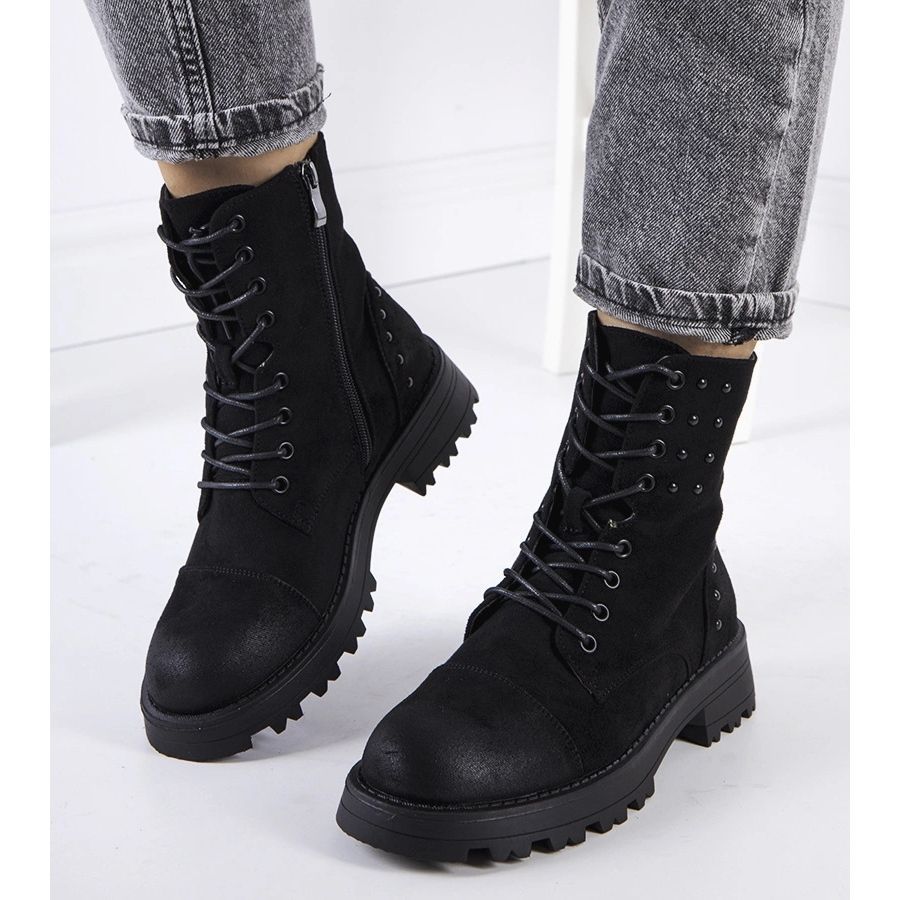 Részletek: Fekete öko-velúr csizma a Polperro cégtől