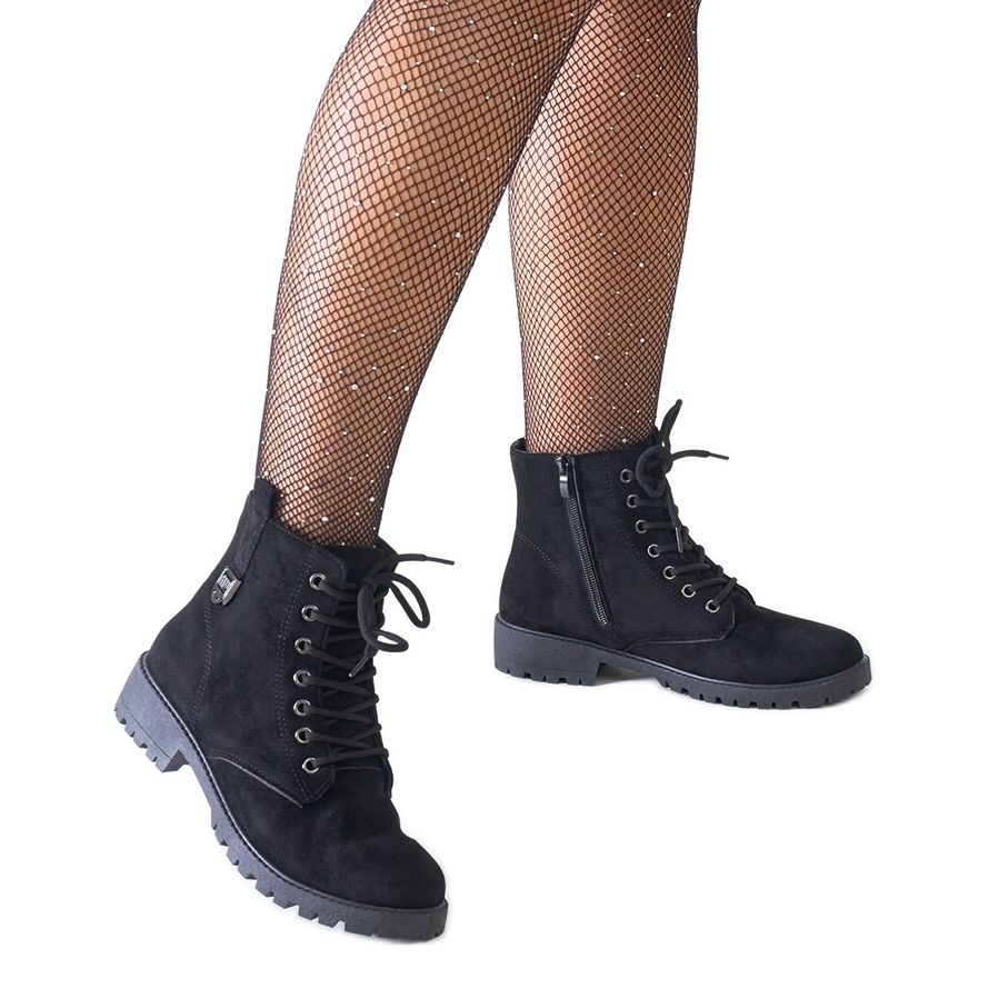 Részletek: Fekete öko-velúr munkás bokacsizma a Madana platformon