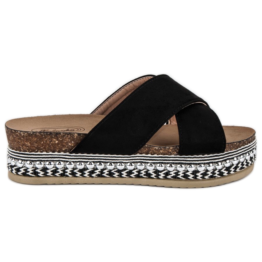 A fekete papucsok ellensúlyozzák a divat forgatagát, és mindig trendben maradnak. Tökéletes választás minden nő számára, aki praktikus és egyben stílusos megoldásokat keres gardróbjában. Gazdagítsa gyűjteményét ezekkel az egyedi papucsokkal, amelyek minden helyzetben tökéletesek lesznek!