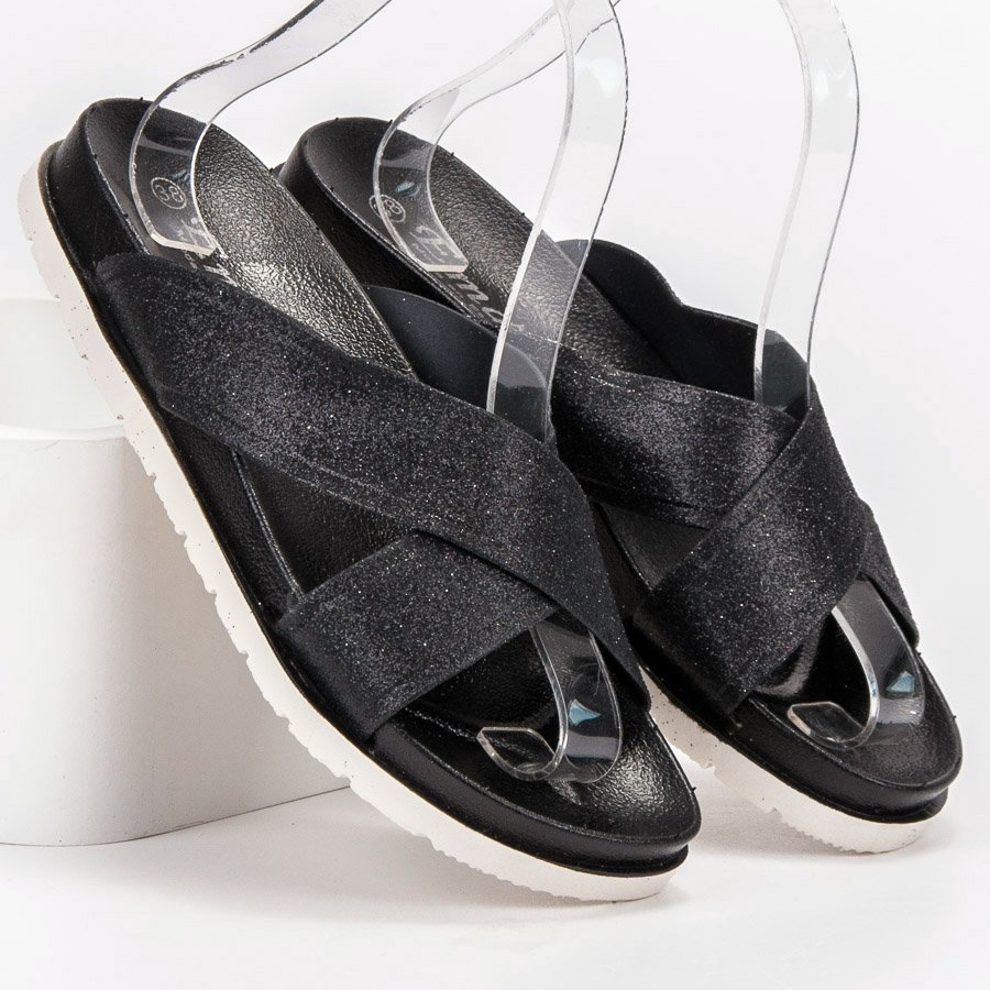 Vigyen egy kis csillogást mindennapi gardróbjába a fekete Emax flip-flop csillogó felülettel. Ezek a kivételesen kényelmes papucsok tökéletes választás minden nő számára, aki értékeli a kényelmet és a divatos stílust.