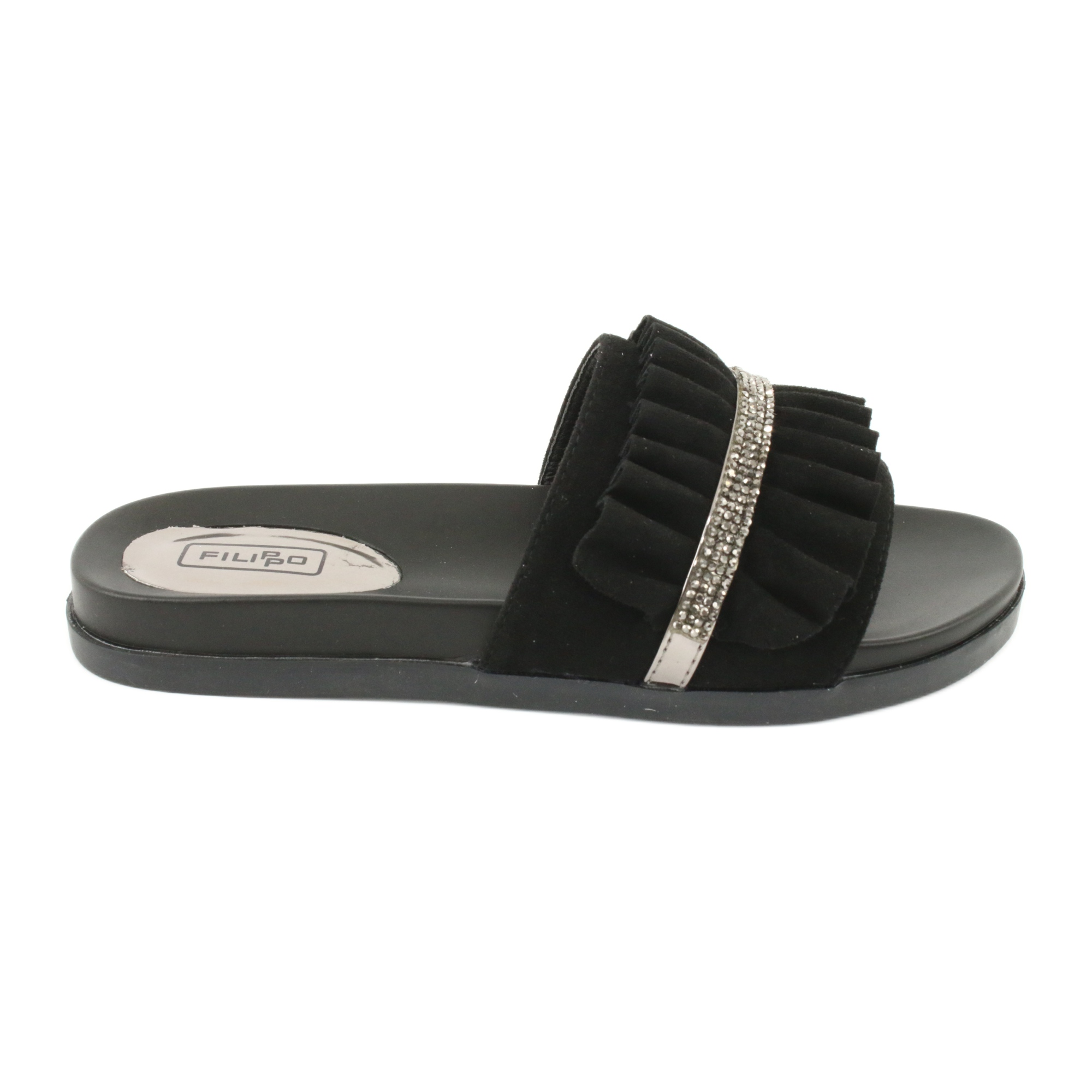 Filippo DK1241/20 BK - Fekete női papucs fúróval és cirkonokkal