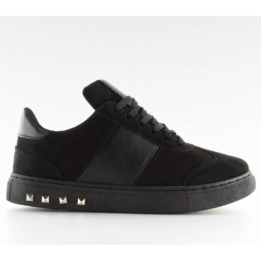 Klasszikus tornacipő elegáns fekete változatban, divatos talpdíszítéssel szegecsek formájában. Stílusos és kényelmes egyben - a puha, profilozott talpbetét és az alacsony kialakítás élvezetté teszi a sétát. Tökéletes a mindennapi formázáshoz, de kontraszt a nőiesebb megjelenéshez is.