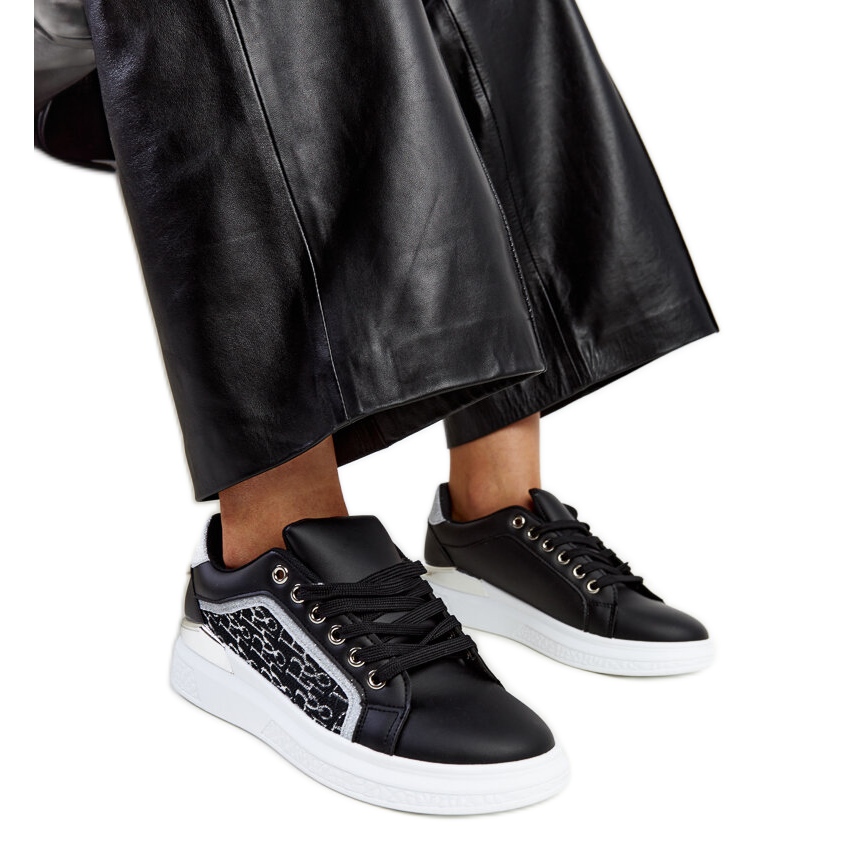 Részletek: Fekete platformos tornacipő fekete csillámmal