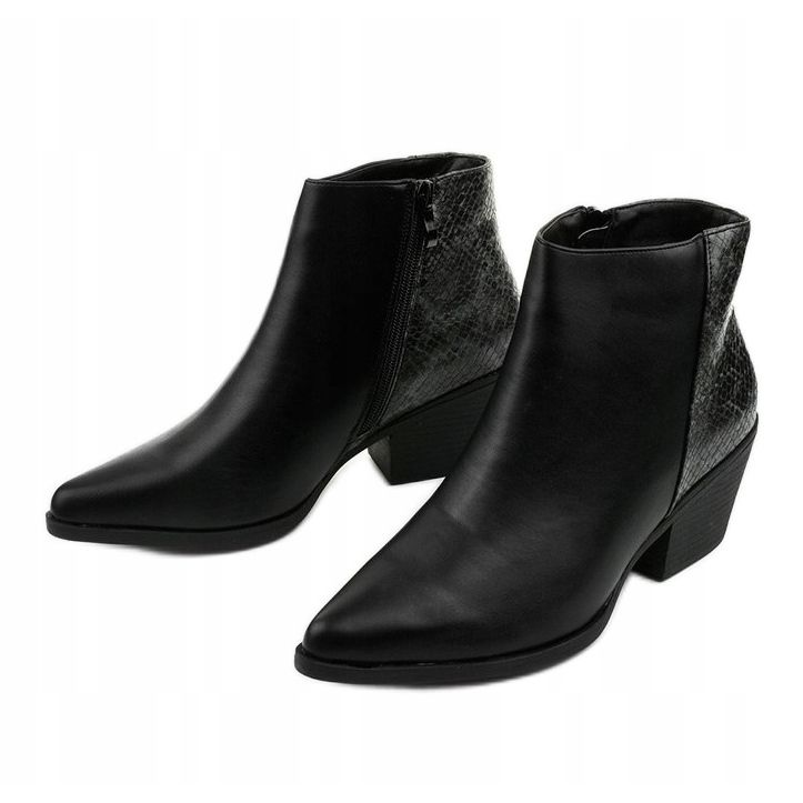 Külön előnye ennek a csizmának a stílusos ökobőr betét, amely a kígyóbőrt imitálja, egyedi karaktert adva a cipőnek. A fekete cowboy csizma finom, 6 cm magas, cloza alakú sarokba van állítva, így egész nap kényelmesen viselhető. Ezenkívül a szigetelt belső tér tökéletessé teszi őket a hidegebb napokra.