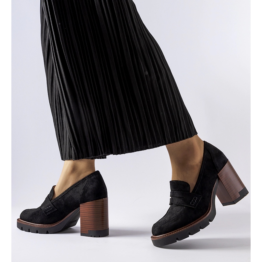 Fedezze fel az eleganciát és a kényelmet a Vinceza fekete pumpáiban. Ezek a stílusos, magas szárú cipők tökéletes kiegészítői bármely ruhatárnak, és számos alkalomra tökéletesen passzolnak a különböző stílusokhoz. Kiváló minőségű ökológiai velúrbőrből készültek, nem csak divatos megjelenést, de viselési kényelmet is biztosítanak.