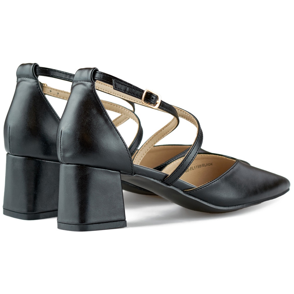 Részletek: Fekete pumpák pántokkal alacsony sarkon