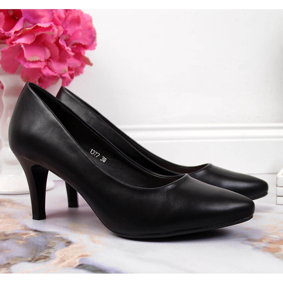A Sergio Leone klasszikus fekete szivattyúi javaslatot jelentenek azoknak a nőknek, akik a modernitás utalásával értékelik az eleganciát. A nagy minőségű velúr ökológiai bőrből készült felső rész finom textúrát és univerzális karaktert ad a cipőnek, és a természetes bőr talpbetét még hosszú kopás közben is kényelmet nyújt. A 7 cm magas sarkú sarok karcsú a sziluett, miközben kényelmes, fáradt szinten marad.