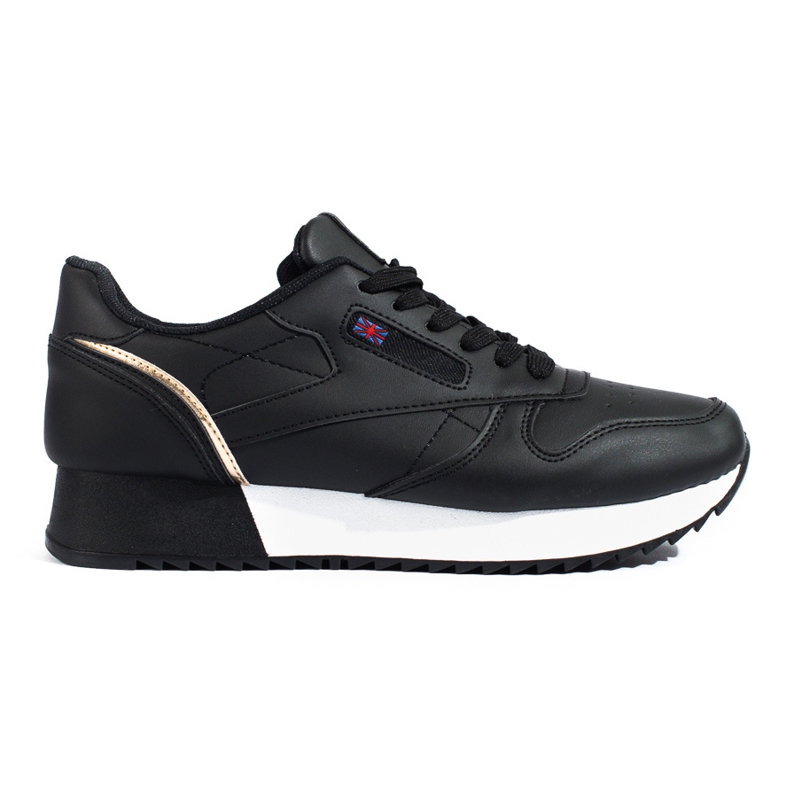 Belül a cipők kellemes textilanyaggal vannak bélelve, amely átöleli a lábfejet, a szövetbetétek pedig további kényelmes párnázást biztosítanak. A klasszikus fekete színű minimalista dizájn finom arany díszítéssel teszi a cipőt könnyen összeilleszthetővé sok hétköznapi stílussal.