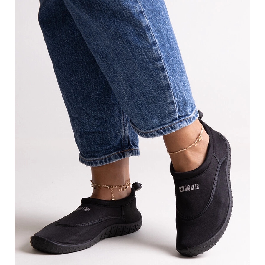 Sport Black Water Shoes Big Star NN274A801 kiváló választás azoknak az aktív nőknek, akik nemcsak a kényelmet, hanem a stílusot is értékelik. Kiváló minőségű anyagból készültek, ezek a cipők kivételes tartósságot és kényelmet nyújtanak a viselkedéshez, amely tökéletes a tengerparton vagy a medencében található nyári kalandokhoz.