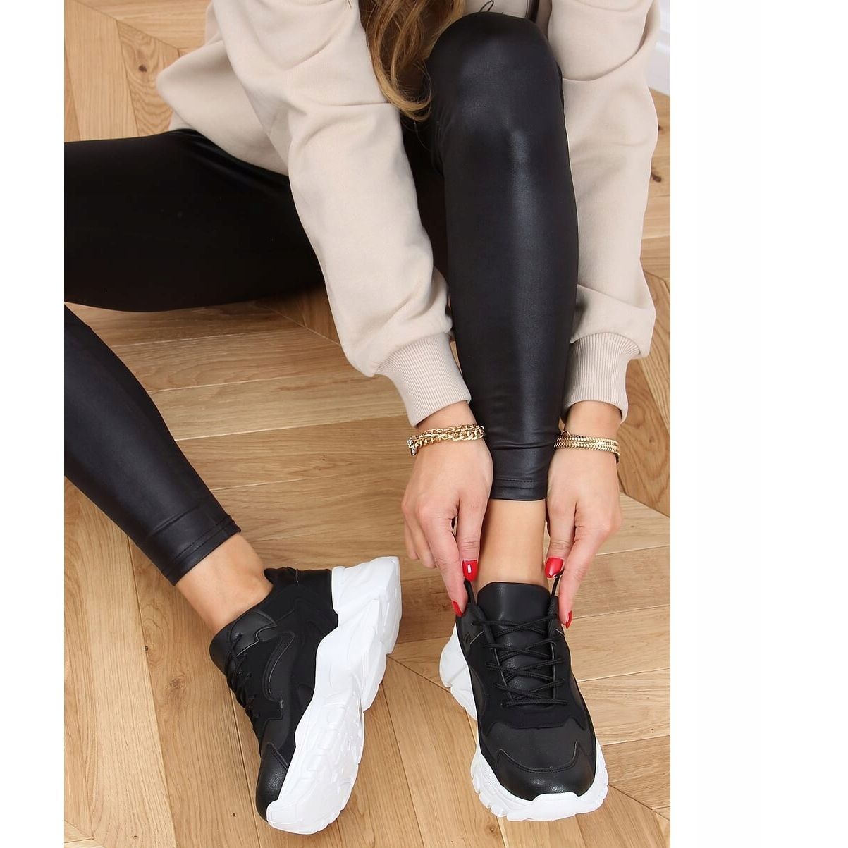 Fedezze fel az egyedi fekete YL-45 Black sportcipőt, amely tökéletesen ötvözi a divatot a kényelemmel. Ez a fűzős női sportcipő tökéletes választás mindennapi használatra és edzés közben. A magas talpnak és az öko velúr és az ökobőr eredeti kombinációjának köszönhetően ez a modell rendkívül stílusosnak tűnik.