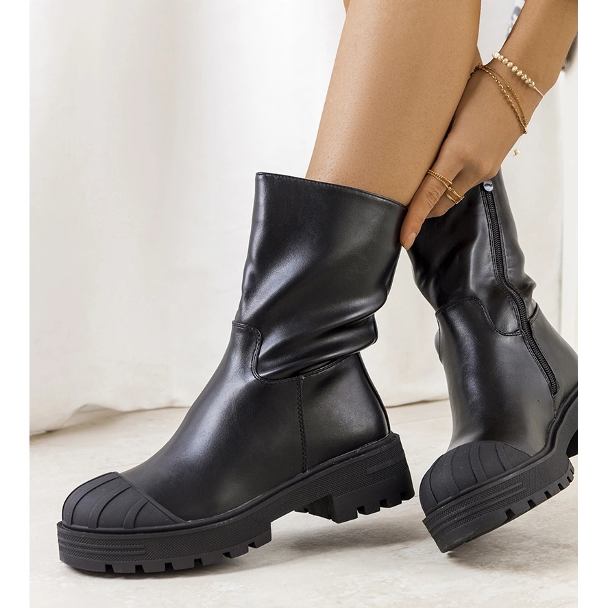 Az elegáns fekete SVILLE -csapdák tökéletesen kiegészítik az őszi és a téli stilizációkat. Kombinálja őket mind a kabát, mind a bőrkabáttal - ezek divatos, feisty karaktert adnak a megjelenésnek. Az ökológiai bőrből készült felső garantálja a jó minőséget és a viselet kényelmét, és a dombornyomású gumi orr megkülönbözteti a modellt a klasszikus stílusoktól.