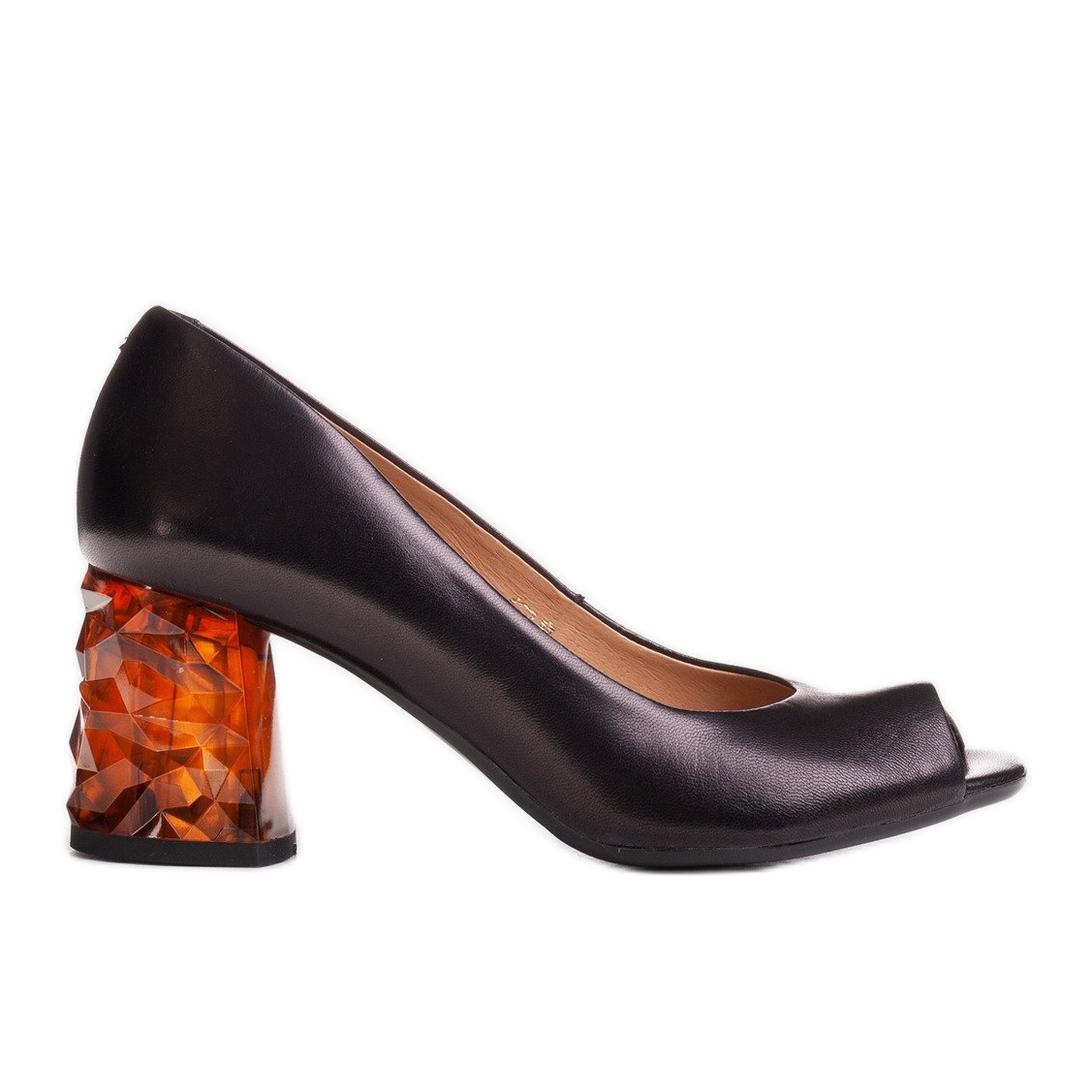 Fedezze fel az eleganciát a kényelemmel kombinálva a borostyánsárga 3D sarokkal rendelkező Marco Shoes Black 1519P szandálnak köszönhetően, amely kifinomult választás az időtlen dizájnt és minőséget értékelő nők számára. Ezek a fekete pumpák tökéletesek az esti kirándulásokhoz és a mindennapi üzleti vagy társasági tevékenységekhez.