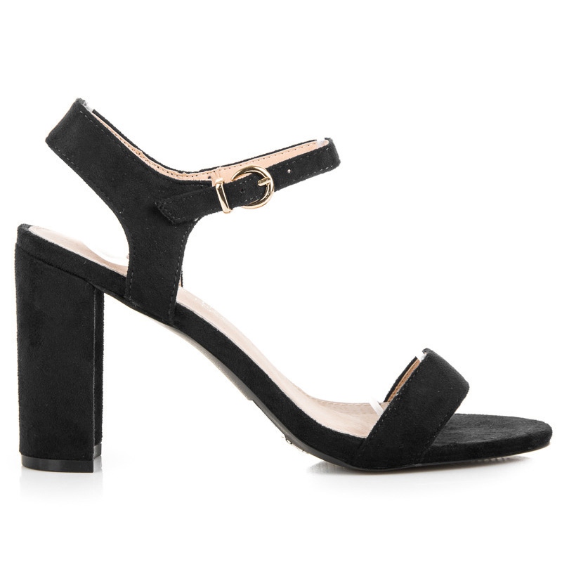 Fedezze fel az eleganciát és a kényelmet a Vinceza fekete magas sarkú szandáljában. Ezek az egyedi női cipők a klasszikus szabás és a modern dizájn kombinációja, amely számos stílusban jól használható. Az ökológiai velúrbőrből készült szandálokat finom kidolgozás és luxus megjelenés jellemzi.