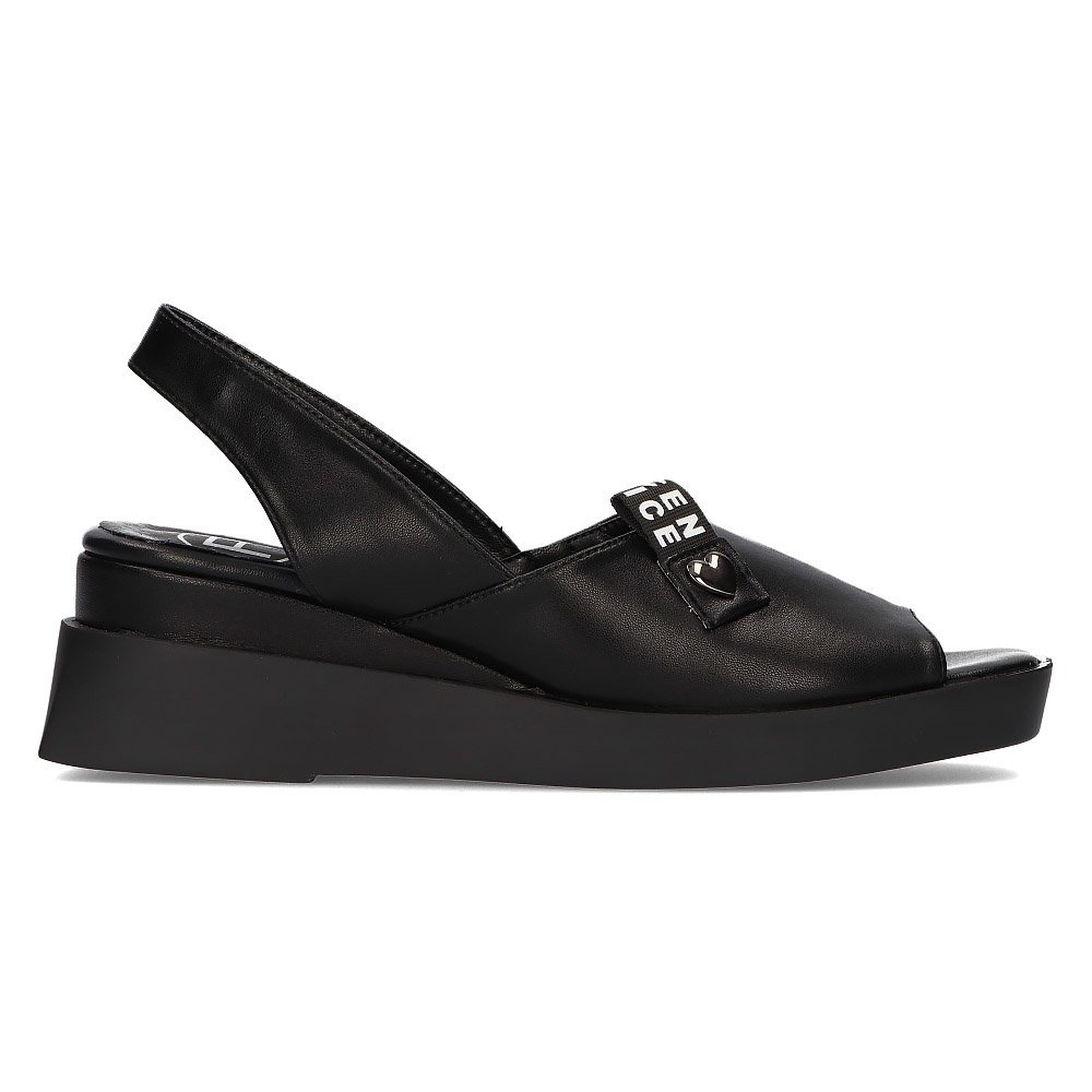 Ezek a szandálok felcsúsztathatóak, így könnyen fel- és levehetők. A lábujj kerek formája és a szintetikus talp biztosítja a kényelmet az egész napos használat során. Az 1,5 cm-es platformmagasság és az akár 5,5 cm-es sarokmagasság könnyedséget ad a sziluettnek, miközben biztosítja a stabilitást. A természetes bőrből készült talpbetét anyaga kellemes viseletet biztosít ezeknek a szandáloknak, G szélessége pedig megfelelő illeszkedést biztosít a lábfejhez.