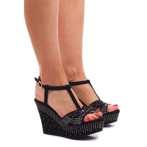 Részletek: Fekete szandál az Wedge F6078 -on