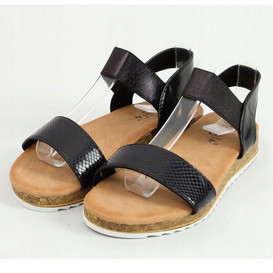 38853 Az Inna Marka fekete szandáljai tökéletesek a nyári stílushoz. A lapos sarok és a slip-on rögzítésnek köszönhetően gyorsan fel- és levehető, ami különösen értékes a forró napokon. A külső anyag és az ökológiai bőrből készült talpbetét garantálja a légáteresztő képességet és a kényelmet egész nap.