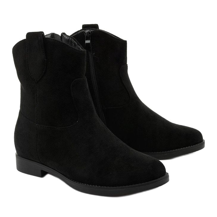 Fekete szigetelt csizma rejtett ékkel, Modell a tökéletes választás az elegáns nők számára, akik a stílus és a kényelem kombinációját keresik. A kiváló minőségű, velúr bevonatú, ökológiai bőrből készült csizma nem csak rendkívül ízlésesen néz ki, de hosszú viselés esetén is kényelmet biztosít.