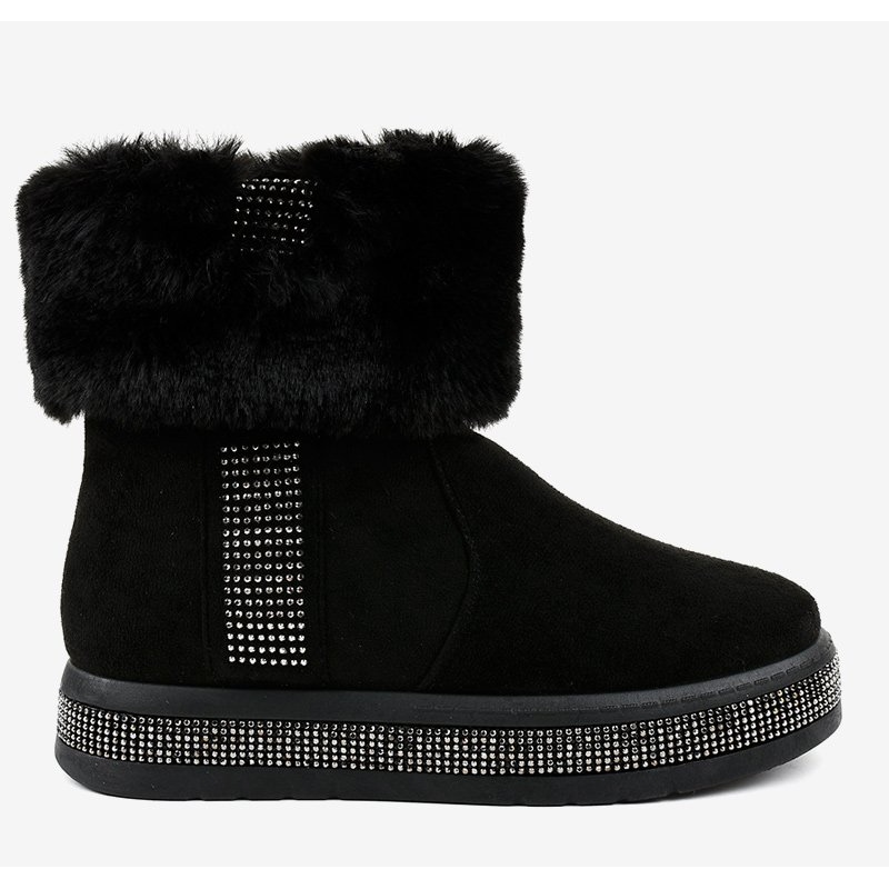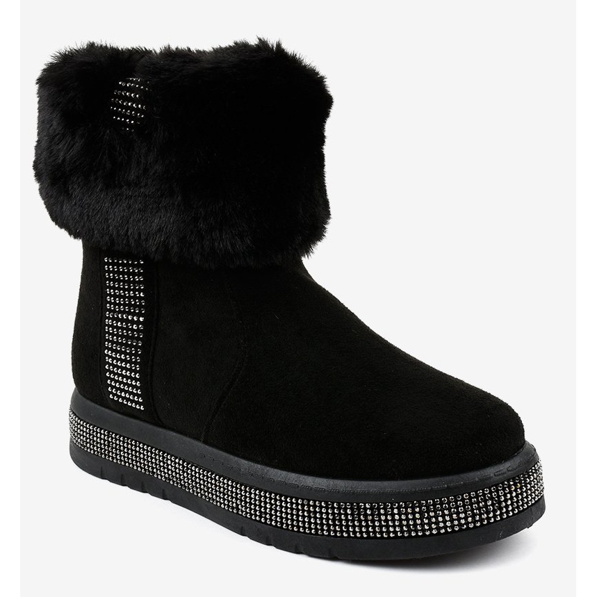 A cipő felsőrésze a boka fölé ér, ami további védelmet nyújt a hideg ellen. A szigetelt belső melegséget garantál, a hangulatos szőrme díszítés pedig varázst ad. A kulcselemek a dekoratív strasszok és strasszok, amelyek csillogást és eredetiséget kölcsönöznek minden stílusnak.