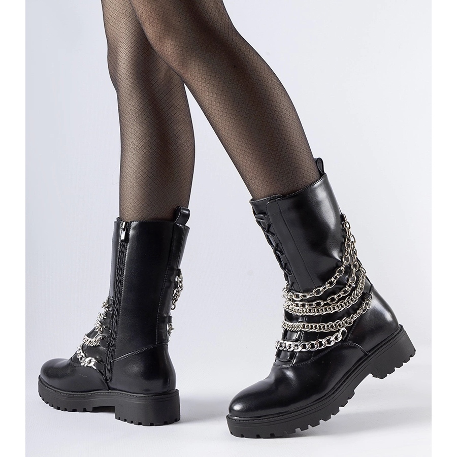 Részletek: Fekete szigetelt bokacsizma Carroll lánccal