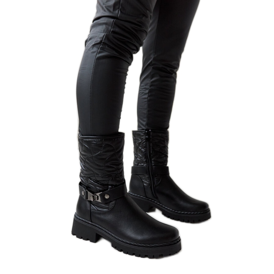 Részletek: Fekete szigetelt bokacsizma dekoratív Lido pánttal