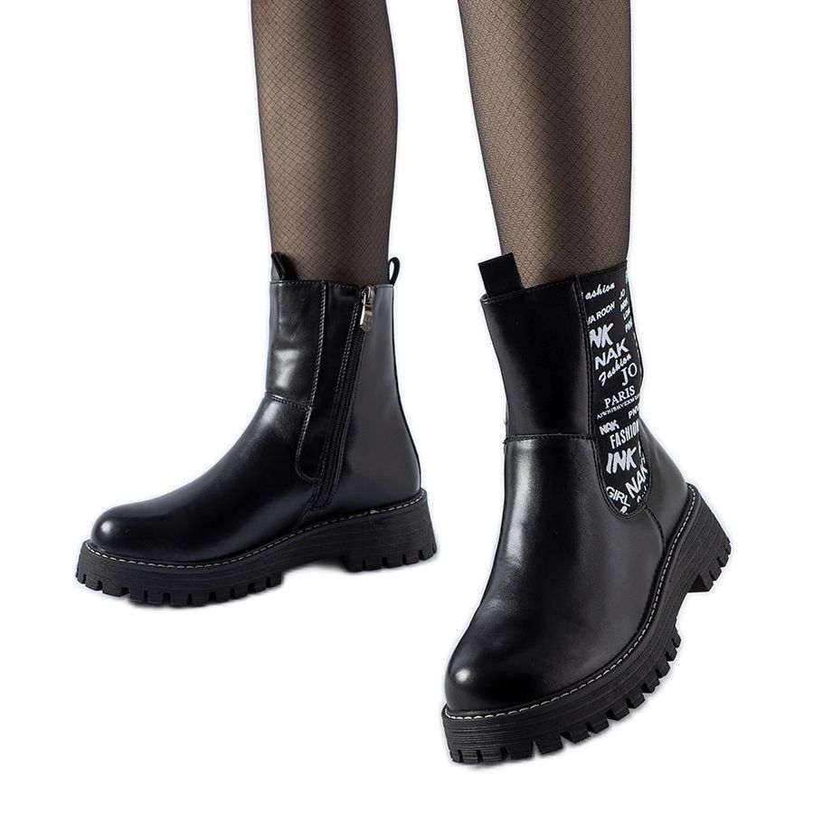 Inna marka Fekete szigetelt bokacsizma felirattal