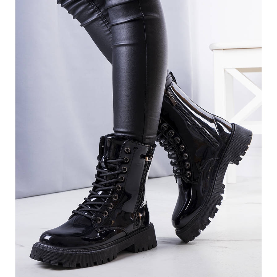 A csizma 36-tól 41-ig terjedő méretben kapható, felső szélessége pedig 12 cm, ami viselés közben biztosítja a kényelmet. További előny a lakkozott felület, amely elegáns karaktert kölcsönöz nekik. Cipzárral rögzítve és fűzve tökéletesen illeszkednek a lábfejhez, ami növeli a használat kényelmét.