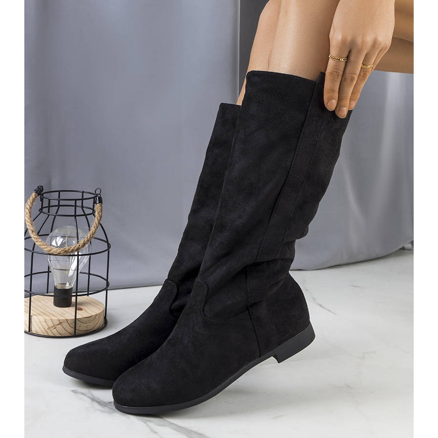 PA1 Thelma - Fekete, szigetelt csizmák, amelyek kombinálják a klasszikusokat a kényelemmel. A borjú kb. Felének felsõ felső részének finoman meghosszabbítja a lábát, amelynek köszönhetően a csizmák tökéletesen illeszkednek a mini iskolákhoz és a klasszikus farmerhez. Suede ökológiai bőrből készült, puha anyaggal párnázva, amely utána szőrme - tökéletes a hűvösebb napokra.