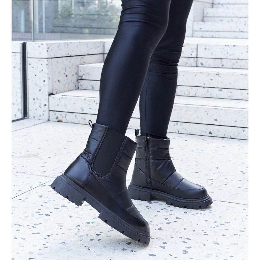 Nagyszerű a városi stilizációkhoz és a havas járdák sétákhoz. Az univerzális fekete szín miatt a cipő könnyen megfelel az alkalmi és az elegánsabb ruháknak.