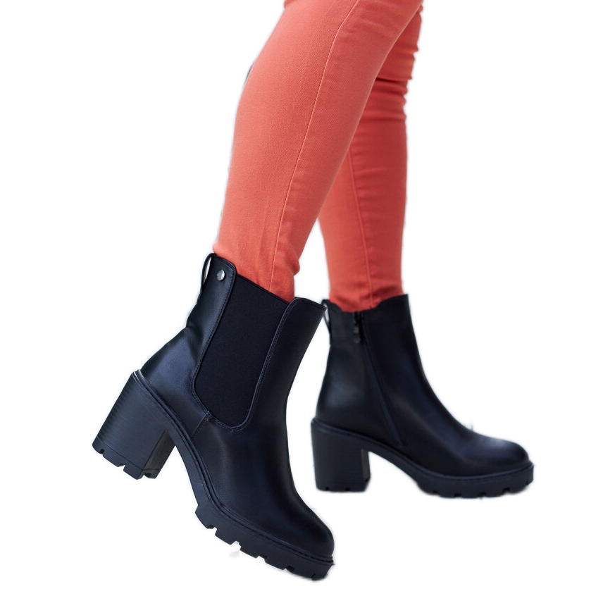 A fekete Caio csizma egy szigetelt, nőies modell egy stabil oszlopon, kombinálva a klasszikus vágást a modern anyagokkal. Organic bőrből (fekete PU), meleg szövet betéttel készítve, stílusos és praktikus lábbeliként fognak működni az őszi téli szezonra.