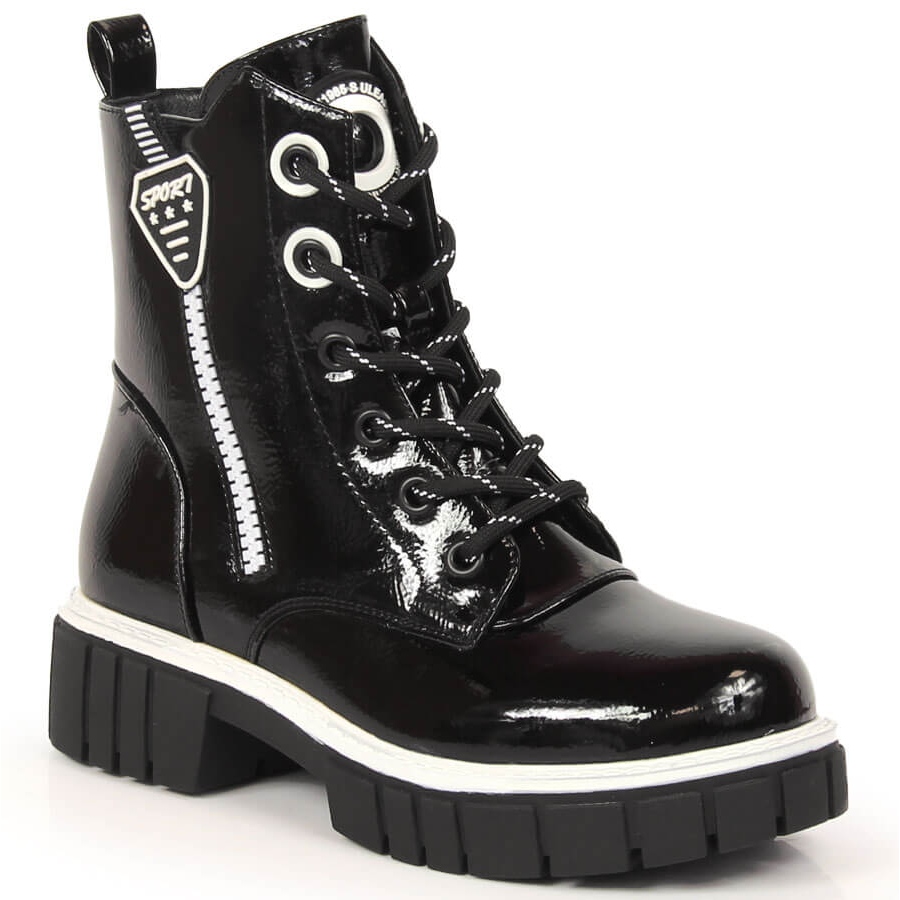 A lány lakkbőr, szigetelt fekete S.Barski csizma ideális választás a fiatal divat szerelmeseinek, akik a hidegebb napokon sem akarnak feladni a stílust. Kiváló minőségű műbőrből készült, lakkfestéssel, ezek a cipők nem csak elegánsak, de tartósak és könnyen tisztán tarthatók is.