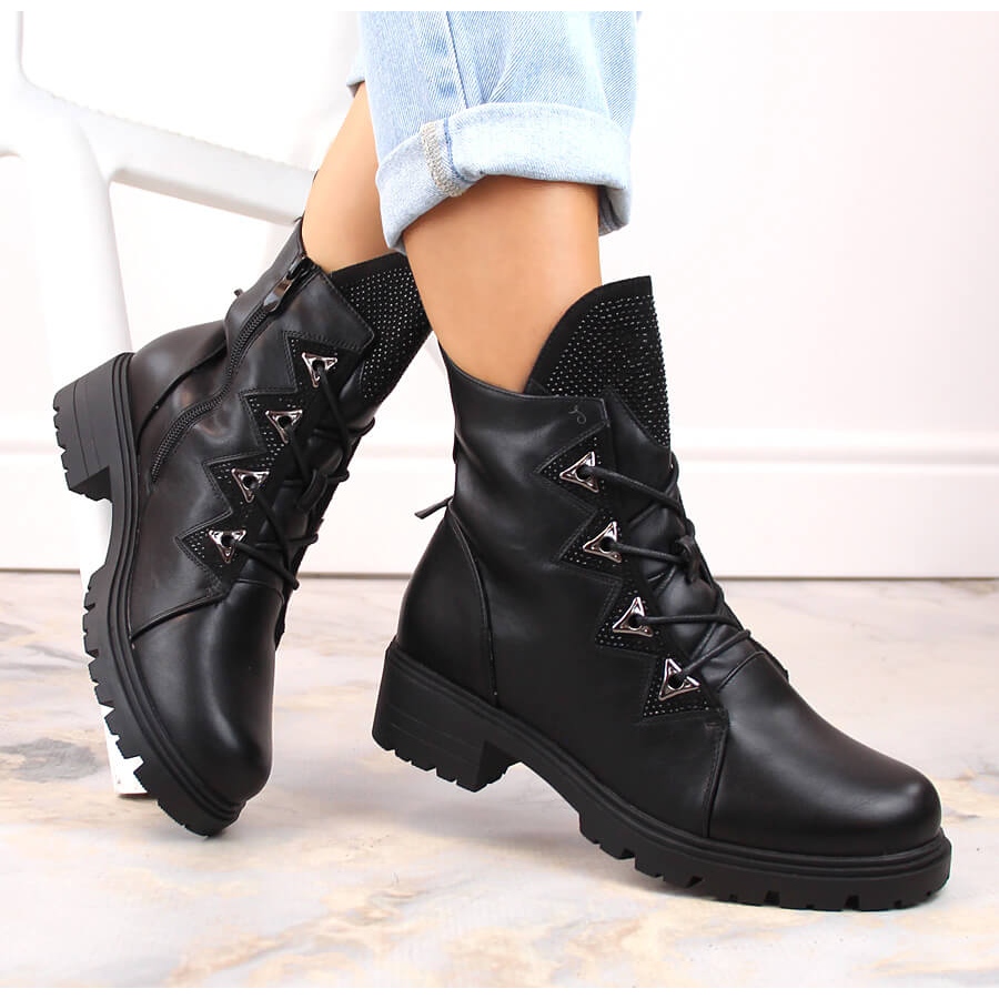 Részletek: Fekete szigetelt női bokacsizma cirkóniával S.Barski HY93-52A
