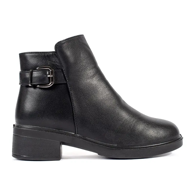 Inna marka Fekete színű női alacsony sarkú bokacsizma díszcsattal