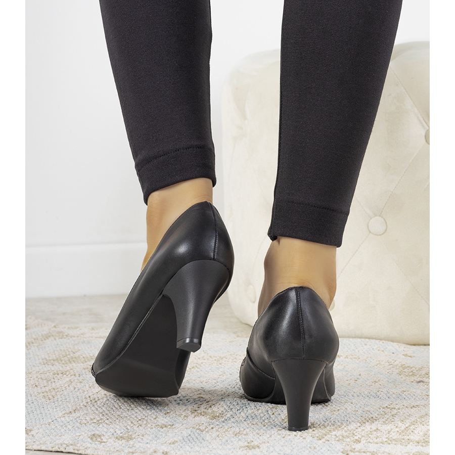 A Black Molina magas sarkú pumpák tökéletes választás azoknak a nőknek, akik eleganciát szeretnének varázsolni hivatalos stílusukba. Ezek az egyedi cipők kiváló minőségű ökológiai bőrből készültek, amely nemcsak esztétikus megjelenést, hanem viselési kényelmet is biztosít. A puha felsőrész gyönyörűen illeszkedik a lábfejhez, a kerek orr a dekoratív kígyóbőr betéttel pedig eredetiséget ad.