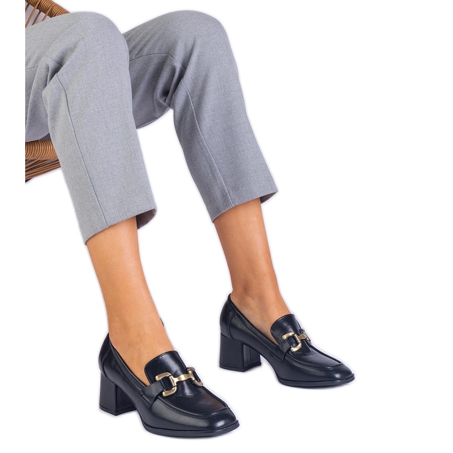 A fekete szivattyúk tökéletesen keverednek a különféle stilizációkkal, és a fekete műanyag talp garantálja a tartósságot és a stabilitást. Belül van egy ökológiai bőr betét, amely tovább növeli a kényelmet.