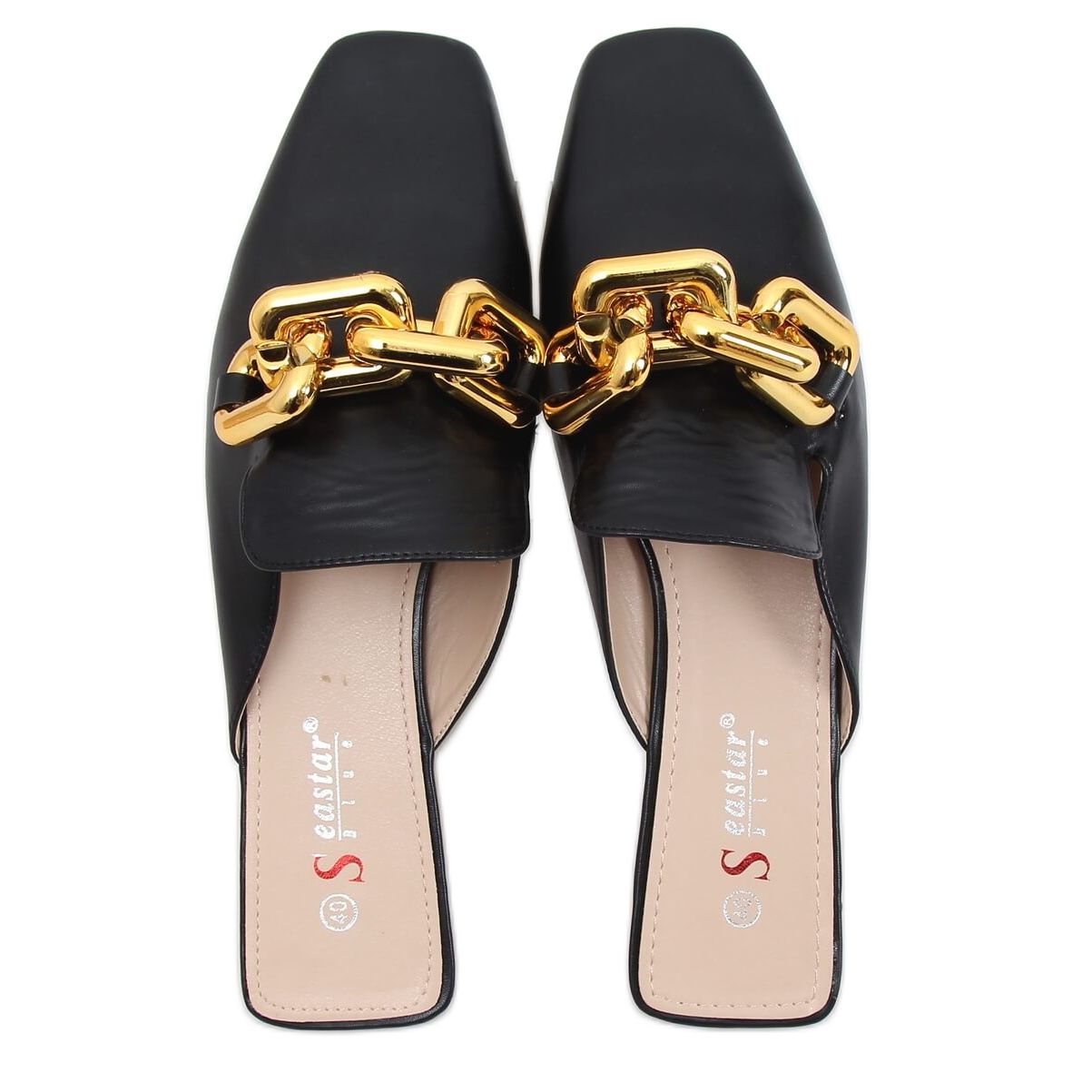 Ezek a papucsok nem csak jól mutatnak a mindennapi stílusban, hanem finom részleteket is tartalmaznak strassz formájában, amelyek eredetivé teszik őket. Alkalmi ruhákhoz tökéletesek, klasszikus fekete színüknek köszönhetően pedig könnyen kombinálhatók más ruhadarabokkal.