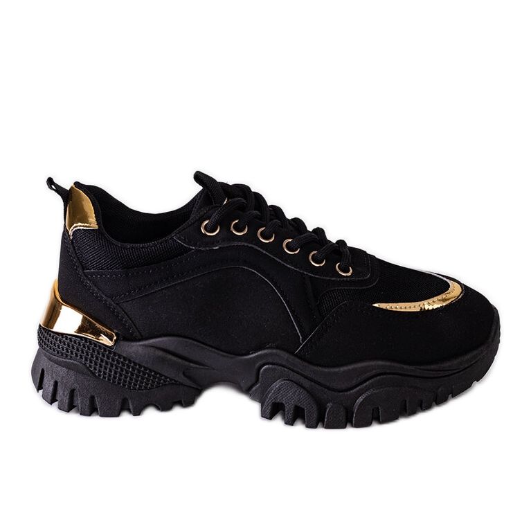 Elegáns és praktikus cipők azoknak a nőknek, akik értékelik a stílust és a kényelmet. A klasszikus fekete ökológiai bőr felső részét finom, arany akcentussal szakították meg - ennek köszönhetően a cipő kiválóan alkalmas mind alkalmi, mind kissé elegánsabb stilizációkhoz.