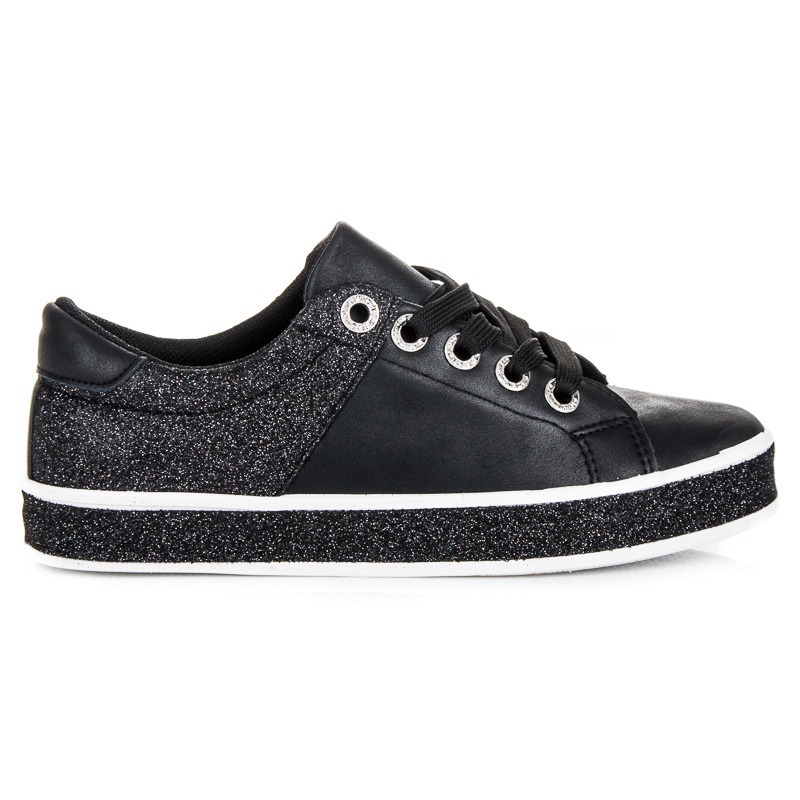 3 cm magas platformjával a Seastar fekete tornacipő nem csak egy kis magasságot ad, de stabilitást is biztosít. Ez a felesleges mintáktól mentes modell minden nő egyéniségét hangsúlyozza, és ugyanakkor harmonikusan illeszkedik bármely gardróbba.