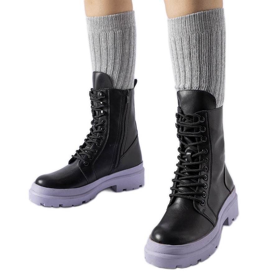 Fekete csizma a színes talpon - stílusos, szigetelt csizma, amely tökéletes hideg napokra. Az MP326 modell ötvözi a modern kialakítást a gyakorlati megoldásokkal: a lágy felmelegedés hőt biztosít, és egy szilárd, gumi talp lila (Nero/Lavanda) hozzáadja a karaktert és javítja a tapadást.