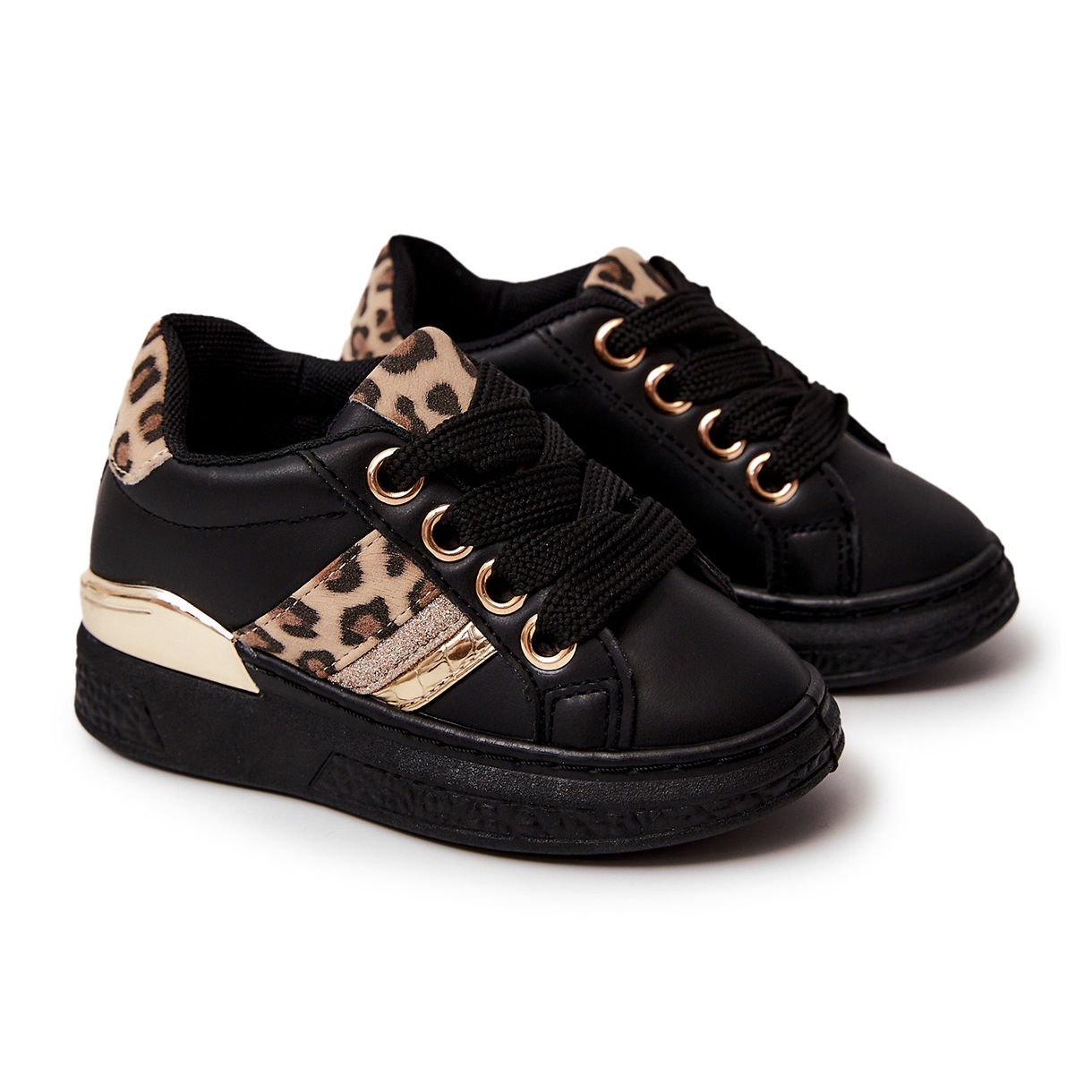 Részletek: FR1 Fekete Trixie leopárd bőr sportcipő