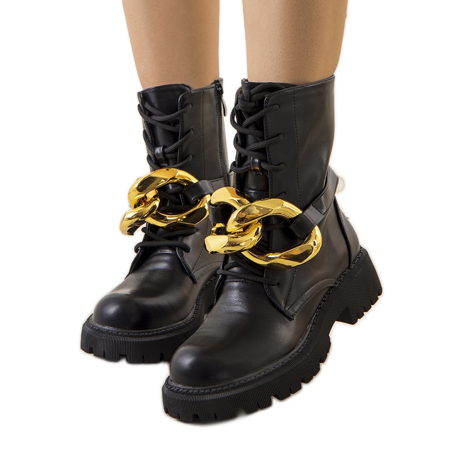 Ezek a csizmák abszolút kötelezőek ebben a szezonban. A nyers, csapda és az elegáns, aranylánc kombinációja divatos és univerzális hatást gyakorol. A kiváló minőségű ökológiai bőrből készült felső felső rész biztosítja a kényelmet és a tartósságot, és a gumi talp stabilitását minden nap.