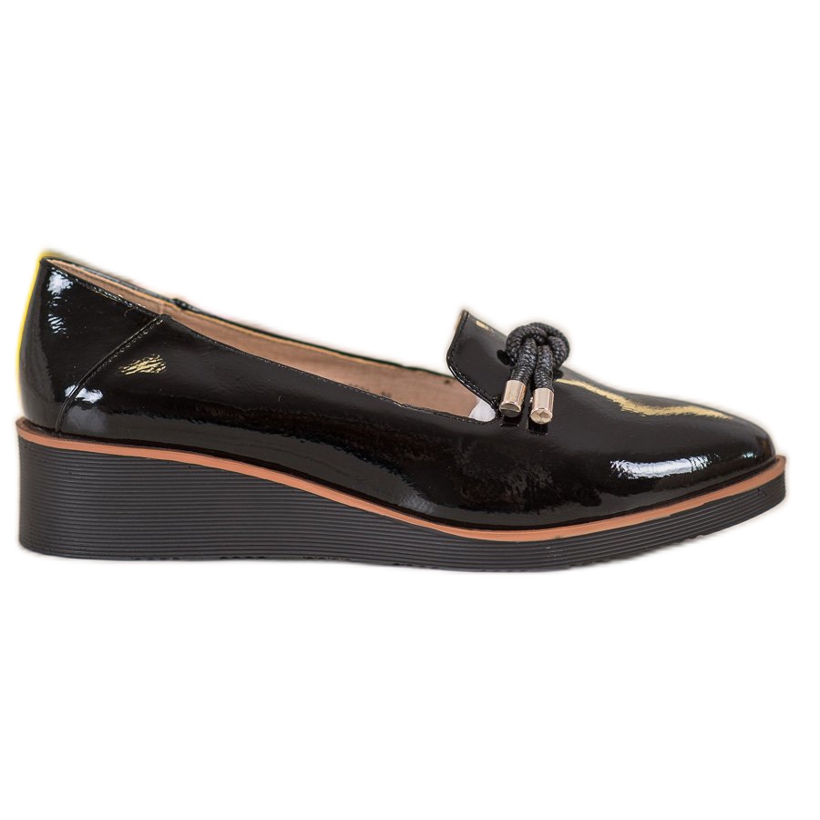 A Black Lords Wedges VINCEZA tökéletes választás azoknak a nőknek, akik az elegancia és a mindennapi kényelem kombinációját keresik. A kiváló minőségű anyagokból készült stílusos cipők lakkozott felülettel rendelkeznek, amely gyönyörűen visszaveri a fényt, és minden ruhának fényűző karaktert ad.