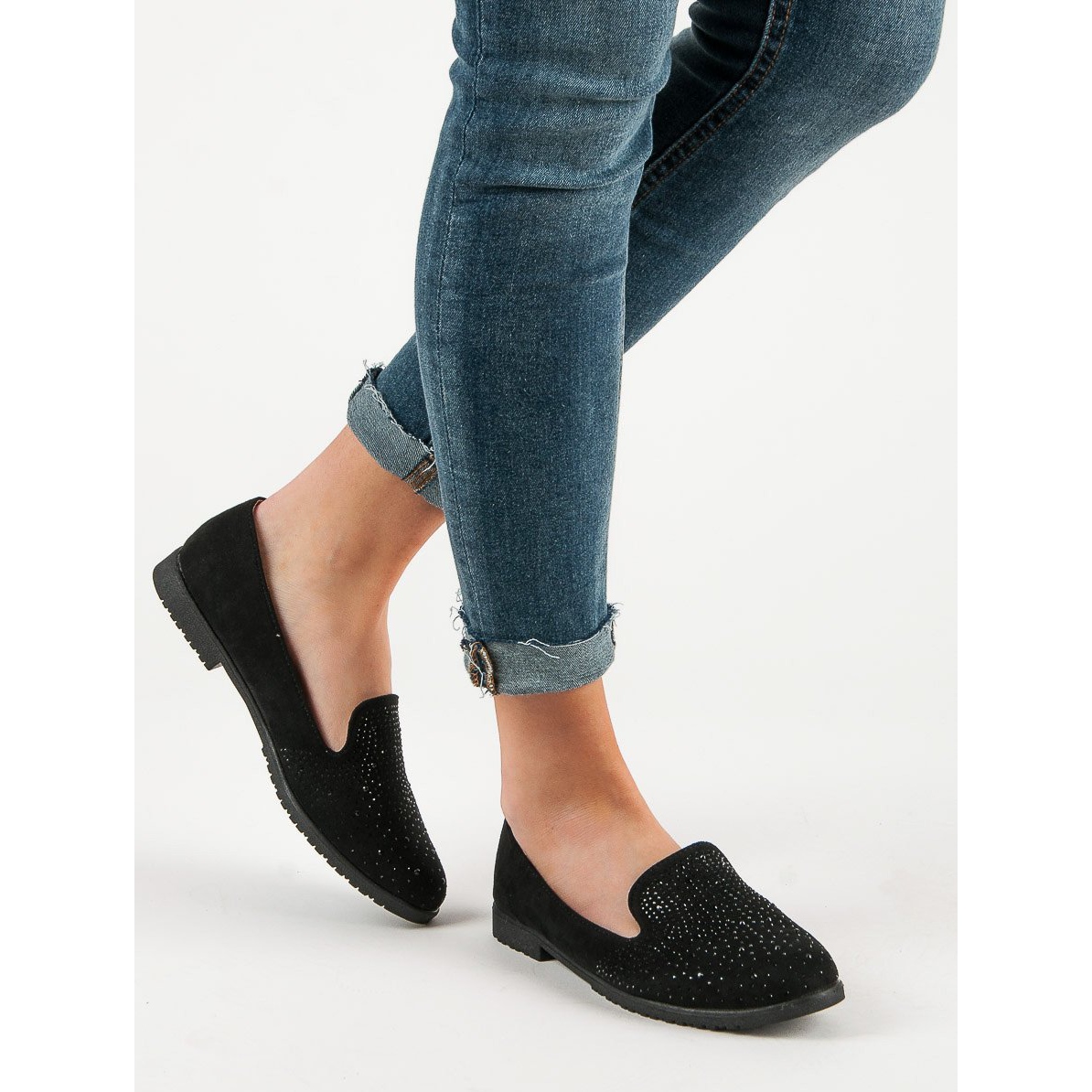 A Black Lords With Crystals egy olyan ajánlat, amely a stílus és a kényelem kombinációjával gyönyörködik. Ezek az egyedi, ökológiai velúrbőrből készült cipők minden bizonnyal felkeltik a figyelmet az elején elhelyezett finom fekete kristályoknak köszönhetően. Tökéletesek a mindennapi viselethez, kiváló alternatívát jelentenek a hagyományos balett lakásokhoz, miközben modern és egyedi megjelenést kínálnak.