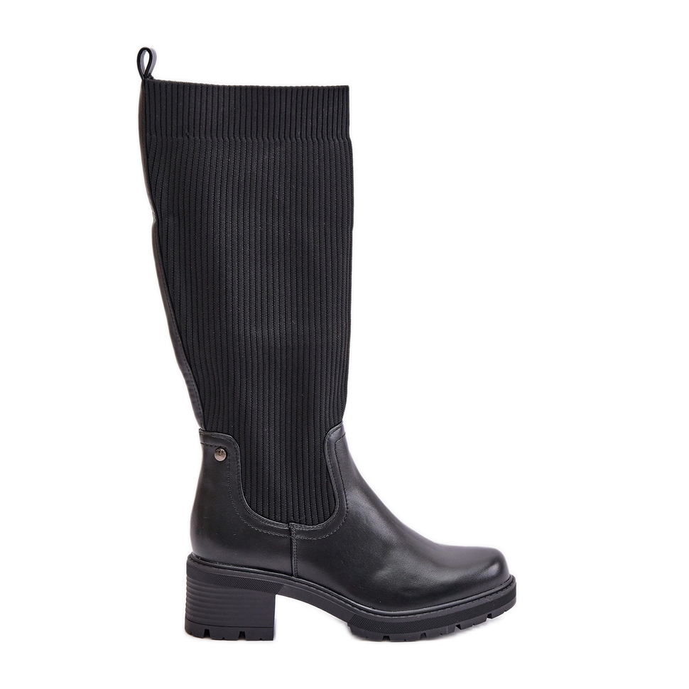 Részletek: Fekete Vaimi bebújós csizma elasztikus felsőrésszel a térd felett