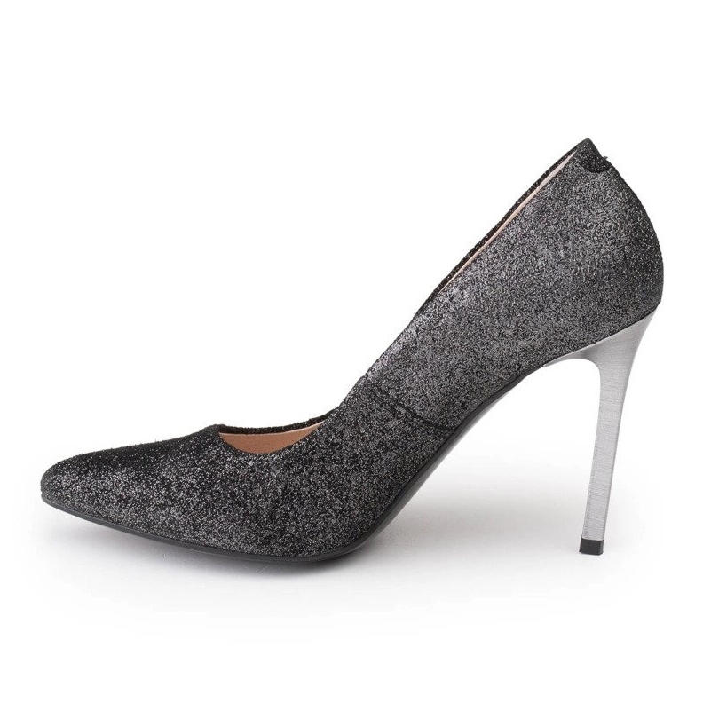 Marco Shoes Marco Shoes Fekete valódi bőr tűsarkú ezüst sarokkal
