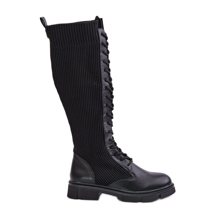 Részletek: Fekete Vamilena fűzős csizma elasztikus felsőrésszel