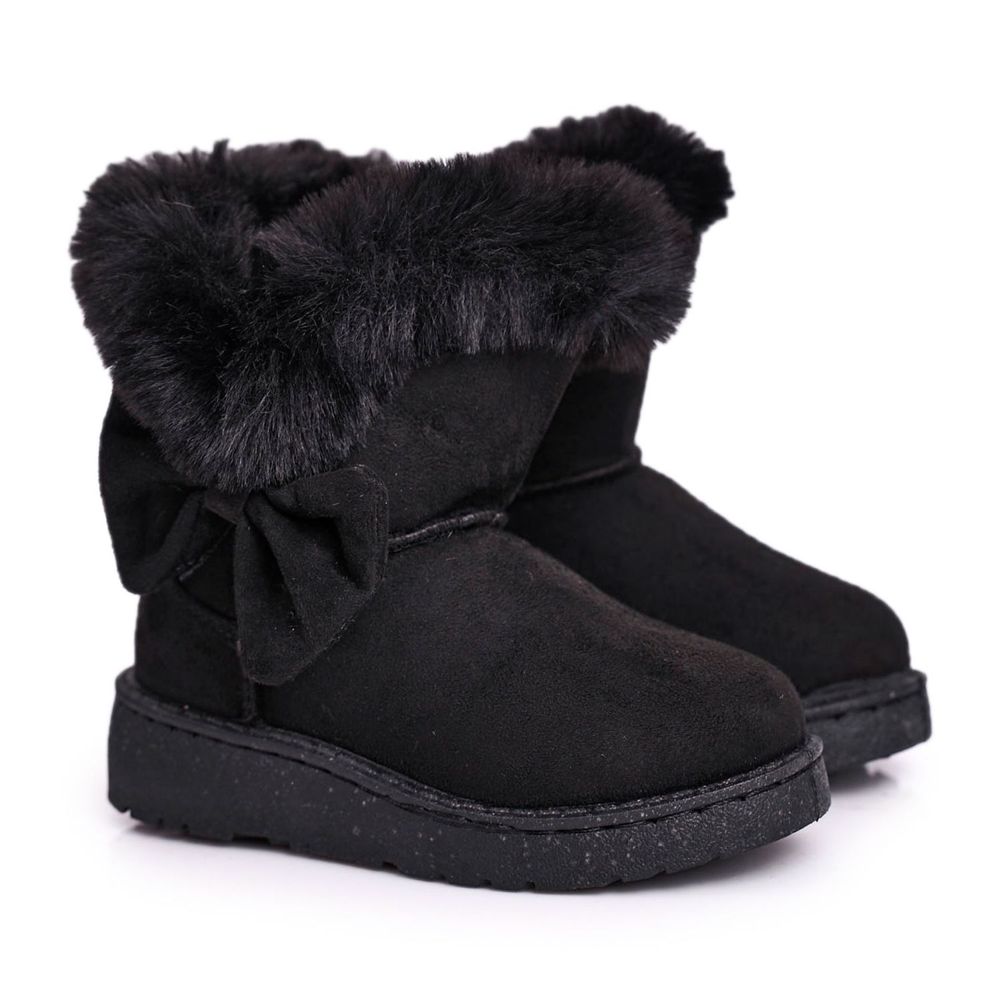 Részletek: FRROCK Fekete Vella gyermek hócsizma szőrme masnival
