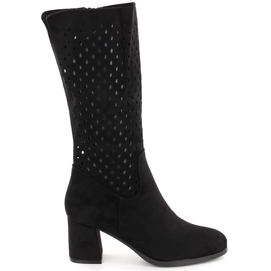 M. DASZYŃSKI M. DASZYŃSKI Fekete velúr áttört csizma M.Daszyński SA156-10B