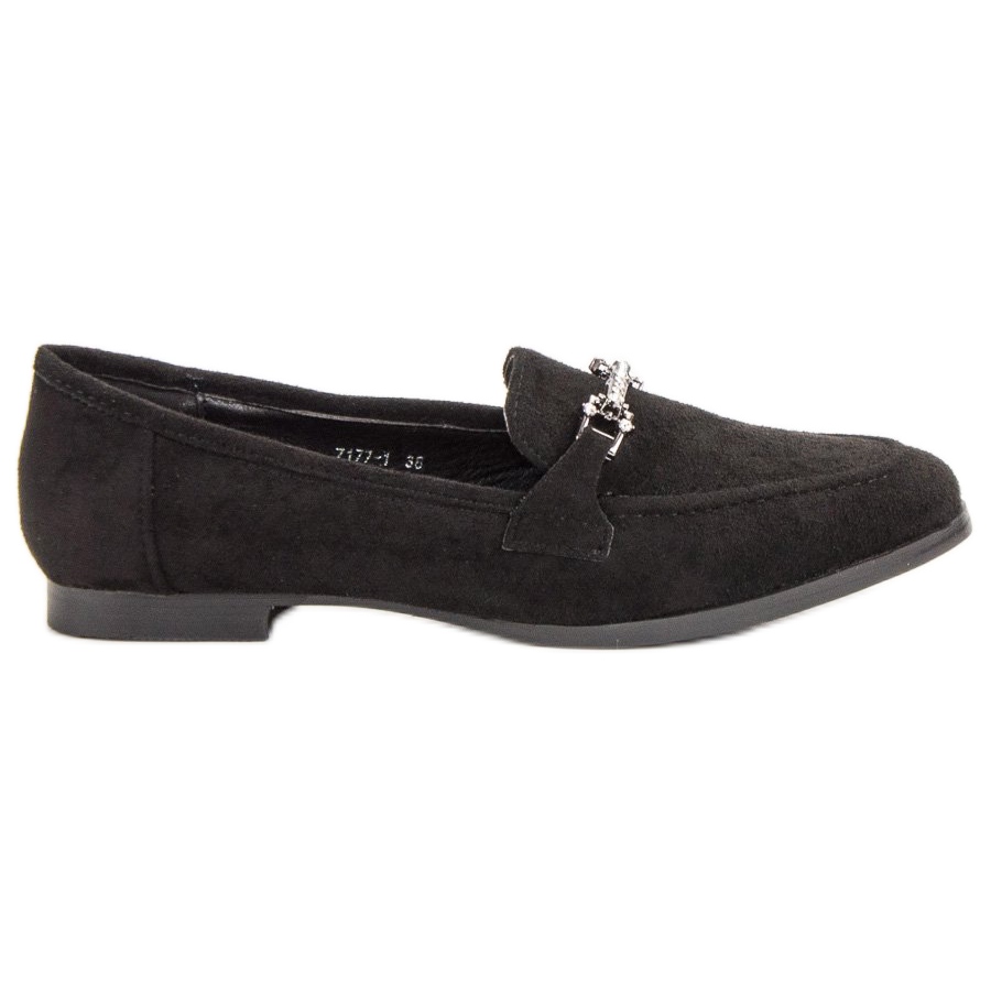 A Balada fekete velúr mokaszinjai tökéletes választás minden nő számára, aki értékeli a stílust és a kényelmet. Ezek az elegáns cipők kiváló minőségű ökológiai velúrbőrből készültek, így tökéletesek a legkülönfélébb stílusokhoz – a hétköznapitól az elegánsabb estélyig. Univerzális fekete színük könnyen passzol a ruhatárad többi részéhez, így számos ruhához tökéletes kiegészítője lehet.
