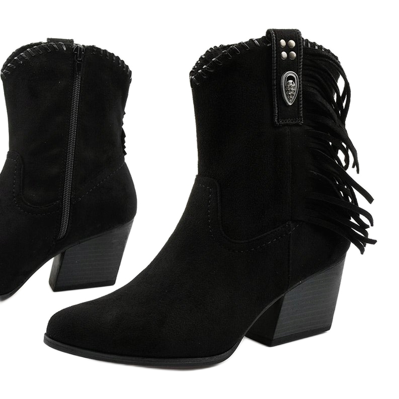 A csizma a boka fölé ér, így tökéletes választás a hidegebb napokra. A felépített sarok felett elhelyezett dekoratív rojtok eredeti megjelenést kölcsönöznek nekik, a széles varrás és övhurok pedig nem csak esztétikát, hanem tartósságot is ad. Az 5 centiméteres tömbsaroknak köszönhetően minden nő magabiztosan és kényelmesen érzi magát, alkalomtól függetlenül.