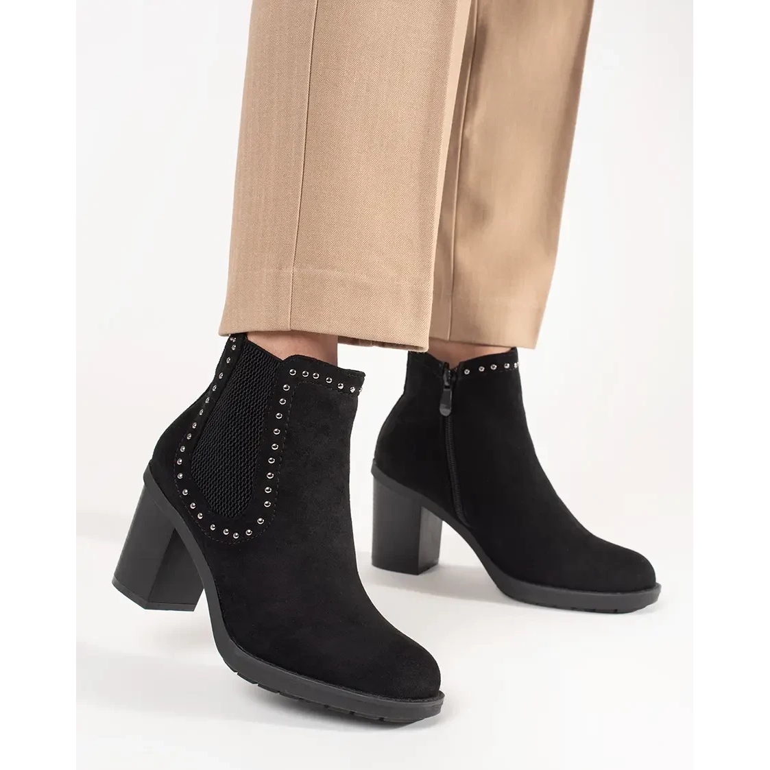 Részletek: Fekete velúr csizma az oszlopon strasszokkal díszítve